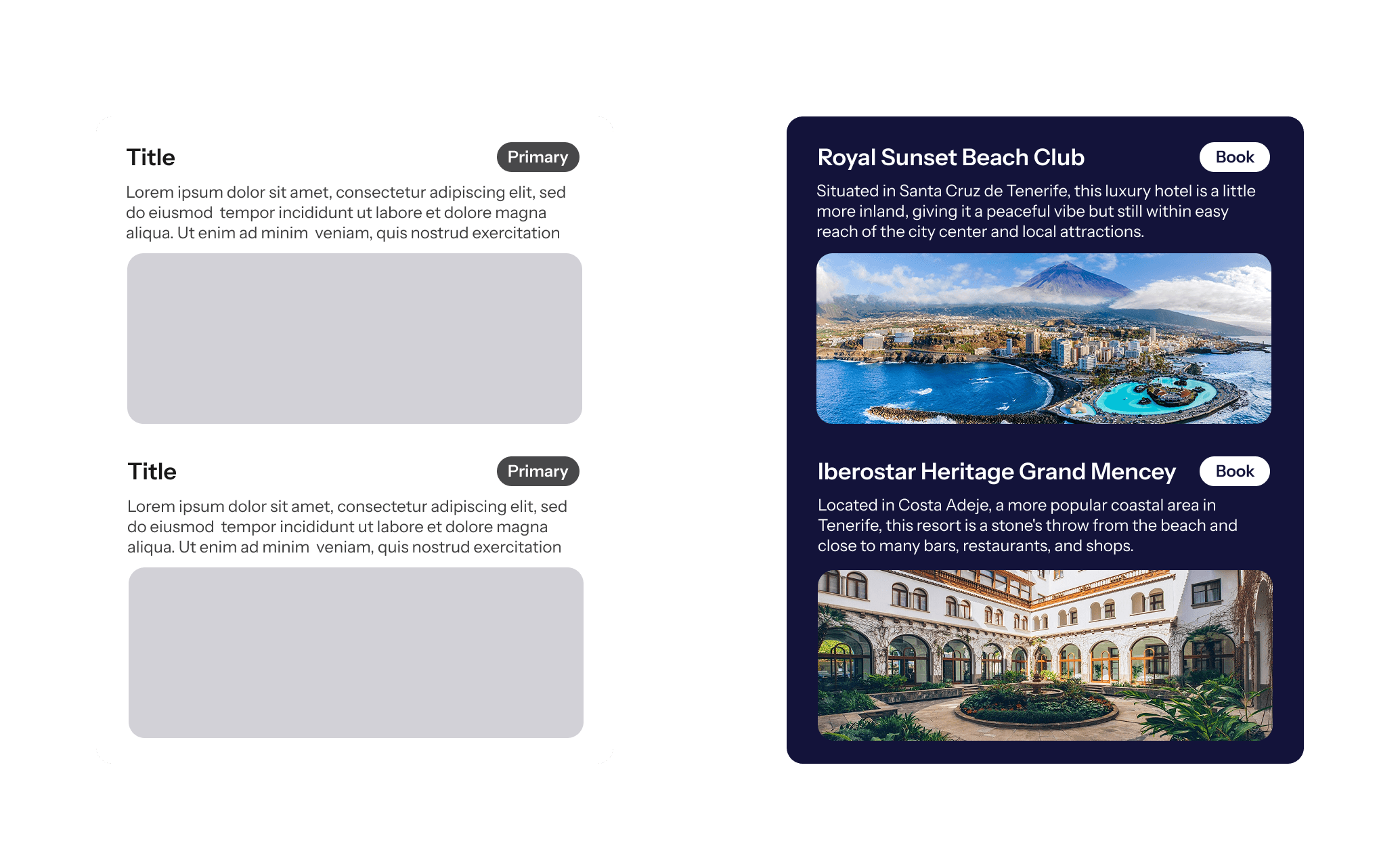 As the design progressed from low-fidelity to high-fidelity, the card component shows the multiple options generated by the AI. This feature allows users to quickly scan their options reducing the time needed for decision-making and researching. In this instance, users can also book their selected option without having to leave the app.