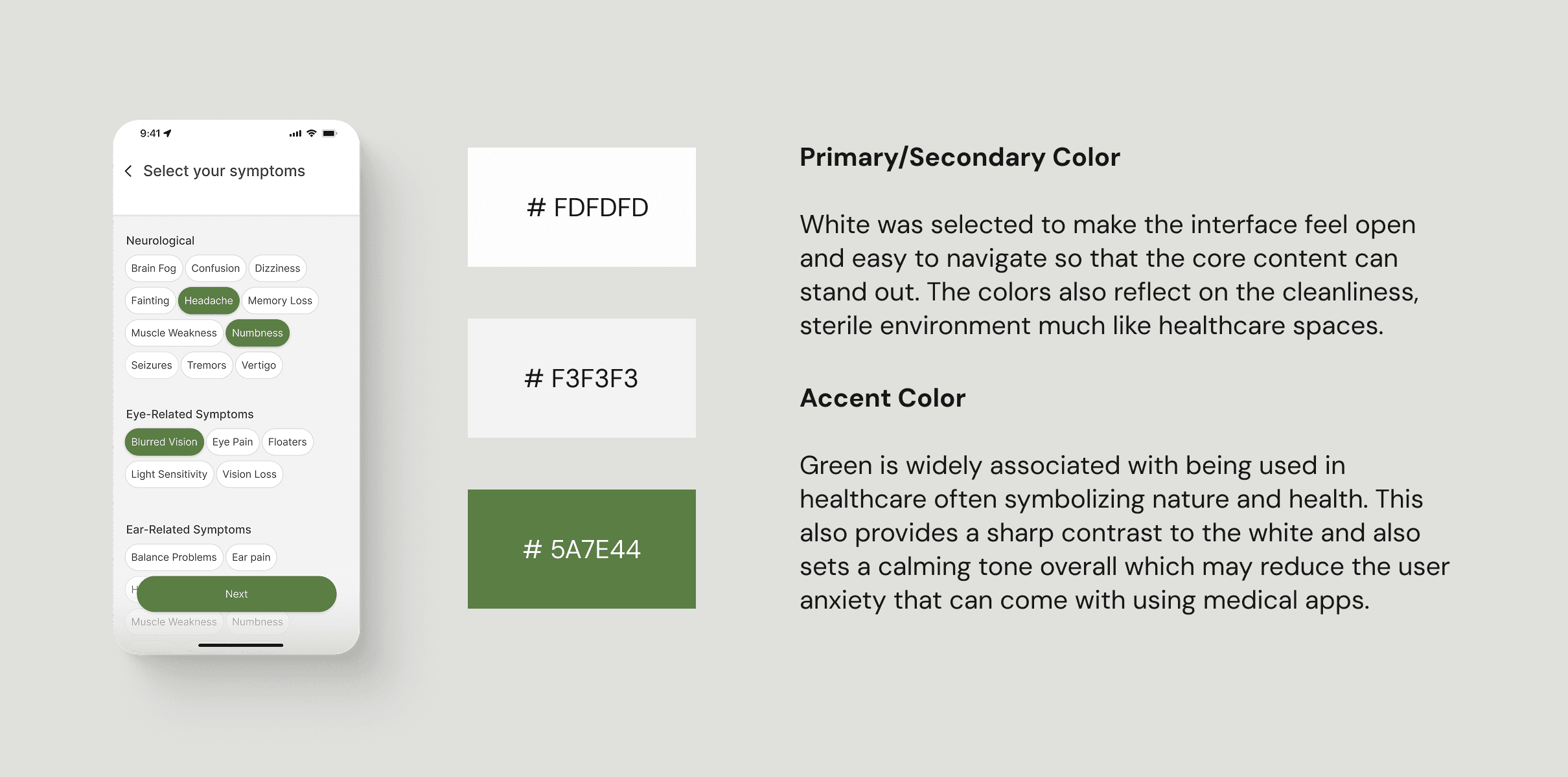 Curated a color palette that felt modern and approachable and ones that evoked trust and calmness that align with the values of the product.